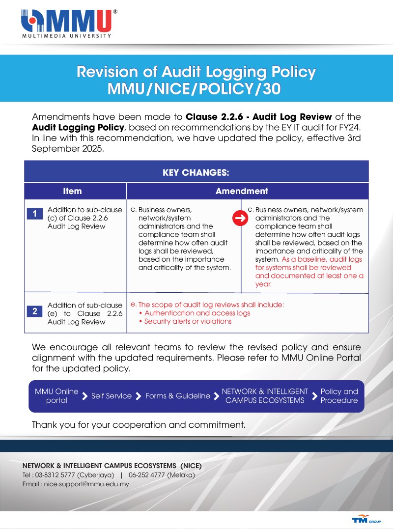 30 Oct 30 October 2025 Awareness ANNOUNCEMENT: MIGRATION TO NEW SECURED MMU VPN SERVICE Read More Like