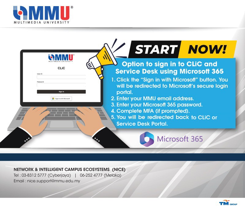 18 Sep 18 September 2025 Awareness Option for sign in to CLiC and Service Desk using Microsoft 365. Read More Like